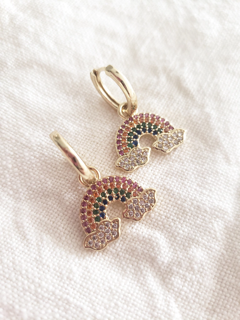 Par de aros de cobre con baño de oro 18k y con zirconias multicolor. Medida: argolla 1,2 cm y largo total 2,5 cm. Este modelo es 2 en 1 ya que podés usar las argollitas solas!